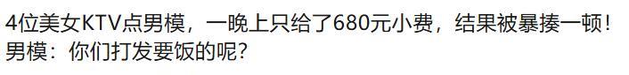 湖北女子小俞晚上和3个好闺蜜商量去酒吧玩,因为蹦不动了,就商量去酒吧楼上的KTV玩,一行人到了包间之后,点了一堆啤酒,此时小俞一个玩嗨的女闺蜜吵着说“没意思”,说着就点一个男 模。随着男性的加入,包间的气氛变得热情高涨。 不得不说男子也够专业,会唱会跳,还会给情绪价值,什么游戏都会玩。一行人一晚上就是喝酒、唱歌,谈人生,玩的好不热闹。直到早上7点,4个女生才意犹未尽的结束,付账的时候,小俞的闺蜜买单,只给男子付了500元的费用。 男子当时就生气了,他们店里收费确实是低消500元,但小俞他们是4个人,自己一晚上一个人当4个人使,怎么能就给这一点钱?当时男子的脸上就挂不住了,希望小俞的闺蜜能再多给一点钱,可是却遭到了拒绝,还说最低不就是500元,还想要多少? 因为男子也喝了不少酒,嘴里骂骂咧咧的就离开了。当时小俞她们以为这件事情就到此为止了,没有想到男子叫来了保安,说她们白玩,不愿意掏钱,随后就发生了肢体冲突。保安拿了3个酒瓶朝她们方向的地面砸去,威胁她们付账。 可不料破碎的玻璃片,意外划伤了小俞的脚趾,一群人打成了一片,店里最后报了警,双方才停止。 而后小俞就自费去医院包扎,虽然伤口不严重,但是小俞觉得是因为KTV保安的危险行为自己才受的伤,所以对方应该对自己进行赔偿,并道歉。 可是当找到KTV之后,店里给出了不一样的说法,说小俞的脚趾受伤,是因为小俞和她的好闺蜜发生了冲突,一人摔了一个玻璃瓶,才不慎误伤了自己,跟KTV没有一点关系。 而小俞也承认了,在结账之前自己确实和朋友发生了口角,也扔了啤酒瓶,不过当时服务员都已经打扫干净了。是后来保安来的时候,又扔的啤酒瓶才伤到了自己。 店里确实没有对男服务员进行明码标价,只是表示低消500元,并且没有人数限制。KTV不想事情闹大,最终表示愿意支付小俞2000元的损失,不过这个价位没有达到小俞的预期,她说要继续维权,直到自己满意为止。 一些能饮酒的娱乐场所,本来就容易发生冲突,很多顾客借着酒劲会失去正常的判断能力。所以出门在外,饮酒要适度是其一。关键是找合法的场所,进行安全绿色的娱乐项目。不然在酒精的作祟下,说不定自己的一个决定就会让自己掉入万丈深渊。 对此,你怎么看呢?欢迎在下方评论~