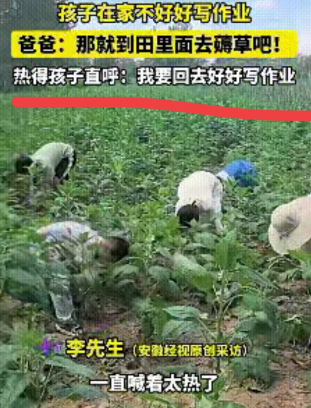 “这下后悔了吧!”安徽阜阳,一男子因孩子在家不好好写作业,将其带到田里薅草,不料,孩子们没待多久就受不了,热的直呼要回去写作业,可男子却没放他们回去,并告诉他们:吃不了学习上的苦,就要吃生活上的苦! “我再也不敢了,我今后一定要好好学习,真的太热了!”男孩哭诉着说道,他的声音里夹杂着委屈和疲惫,这一幕发生在安徽阜阳的一块稻田里,而这一切的起因,仅仅是因为孩子在家不好好写作业。 暑假对于孩子们来说,本应是充满欢乐和自由的时光,但在阜阳的一户普通家庭里,这个暑假却变得有些不同寻常,家中几个孩子,一到假期就放飞自我,作业本摊在桌上,半天也写不出几个字,而手机却玩得不亦乐乎。 这位父亲也不例外,面对孩子对作业的漠视和对玩耍的沉迷,他尝试了各种方法,但效果都不尽如人意,一天,看着孩子们又在空调房里对着手机哈哈大笑,而桌上的作业本依旧空白,他终于忍无可忍,他决定采取一种特殊的方式,让孩子们体验一下“不努力”的代价。 “走,带你们去田里薅草!”父亲突然说道,孩子们一听,还以为是什么新鲜的游戏,兴奋地跟着父亲出了门,父亲带着孩子们来到自家的农田,这是一片金黄色的稻田,在七月的骄阳下显得格外耀眼,一开始,孩子们还觉得新鲜,毕竟平日里都是在城市里的空调房中,很少有机会接触到农田,他们蹦蹦跳跳地跟着父亲来到田间,以为这是一场有趣的冒险。 然而现实却给了他们沉重的一击,七月的太阳火辣辣的,毫无遮挡地炙烤着大地,田间的温度比城市里还要高上许多,孩子们刚弯腰拔了一会儿草,就感觉汗水像断了线的珠子一样不停地从额头、脸颊滑落,不一会儿,衣服就被汗水湿透,紧紧地贴在身上,汗水流进眼睛里,那种酸涩的感觉让他们难受得直眨眼。 此时孩子们才意识到,在空调房里写作业虽然枯燥,但比起在这烈日下薅草,简直是天壤之别,他们开始想念那凉爽的房间,想念那摆在桌上的作业本。 “爸爸,我们回去写作业吧,真的太热了!”一个孩子忍不住说道,热得直呼要回去写作业,但父亲却没有轻易答应,他一脸严肃地说道:“吃不了学习的苦,就得尝尝生活的累。” 孩子们看着父亲坚定的眼神,知道求情是没用的,他们只好继续在田里拔草,汗水浸透了他们的衣服,疲惫感一阵阵袭来,他们开始后悔自己之前不好好写作业,现在却要承受这样的痛苦。 经过几个小时的努力,孩子们终于拔完了父亲指定区域的草,当他们回到家中时,已经累得几乎站不起来,但这次经历却让他们深刻地认识到了学习的重要性,从那以后,孩子们开始主动写作业,不再像以前那样沉迷于手机游戏。 这起事件在网络上引起了广泛的关注,网友们对此事表达了不同的看法,一位网友留言道:“这位父亲的做法虽然有些极端,但却非常有效,现在的孩子大多都是在蜜罐里长大的,很少有机会体验生活的艰辛,通过这次经历,孩子们能够深刻地认识到学习的重要性。” 另一位网友则表示:“我小时候也经历过类似的事情,我的父亲曾经带我去工地搬砖,让我体验一下劳动的辛苦,那时候我累得腰都直不起来,但正是这次经历让我明白了学习的重要性。” 孩子们在这次经历中,不仅体验到了生活的艰辛,更明白了“不努力就会吃苦”的道理,他们开始主动学习,不再像以前那样沉迷于游戏,这起事件也让我们看到了教育的力量,只要家长用心教育,孩子们一定能够茁壮成长。 对此你怎么看?欢迎大家在评论区留言讨论。