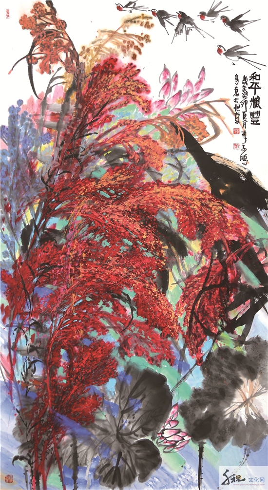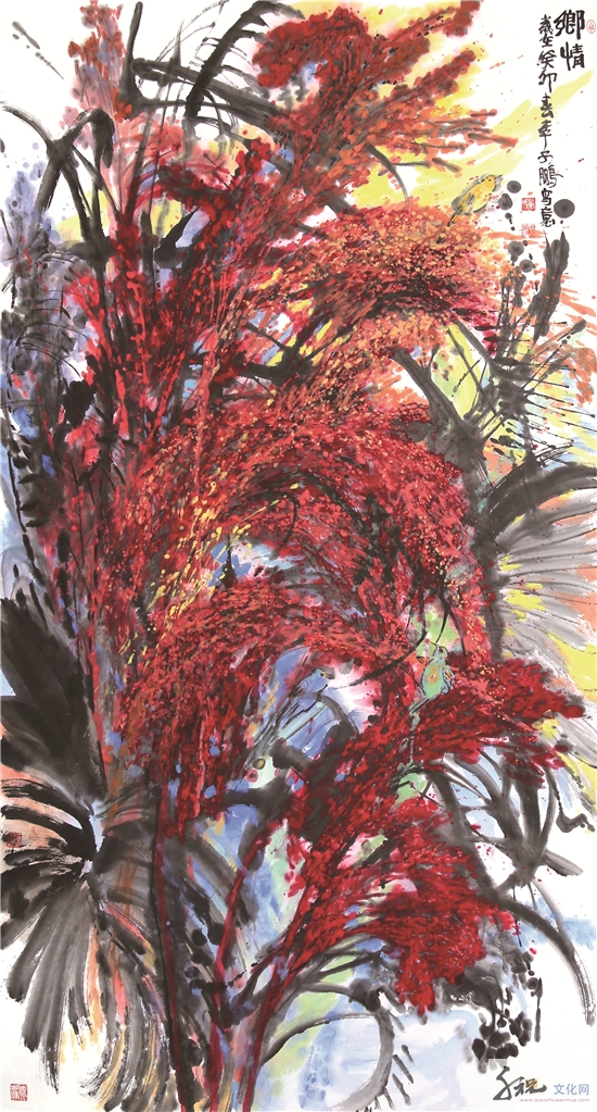 有专家认为,此幅作品李子鹏用中国书法入画,更妙的是,观这件作品以极为罕见的民间题材构图,以红高粱入画用写意简明的艺术形象描绘出来,意趣横生而别具匠心。感知李子鹏自由大胆、壮志凌云的美学世界。最后被一买家以98969376元收入囊中,创造了李子鹏作品新的记录。
