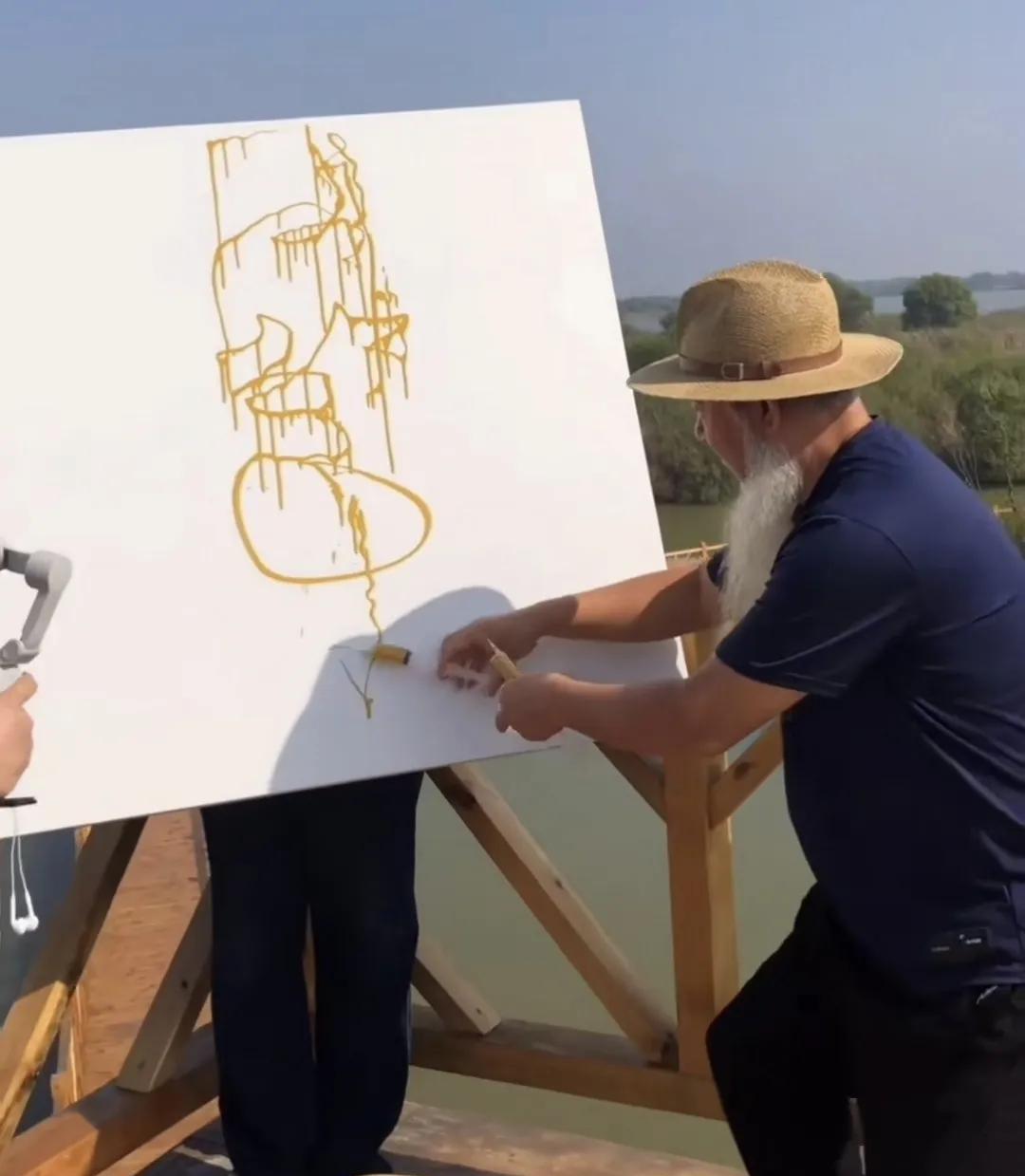 很多人称他为射墨大师,用一根针管,创造了无数的“艺术作品”,获得无数的掌声,无数的流量。我眼拙,看了半天也没看出这究竟是书法作品还是绘画作品,把眼睛都揉出沙子来了,也没看出这艺术作品的美感在哪里。艺术的确需要百花齐放,但至少放出来的要是一朵花,而不是乱七八糟各弄玄虚的东西。对了,今后请不要随便用“大师”二字,能配得上“大师”的人,是寥若晨星的。(图片源于视频截图)