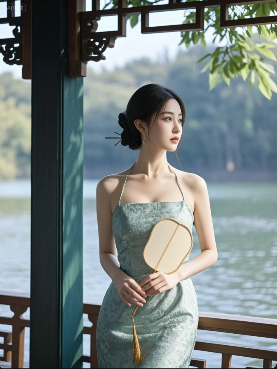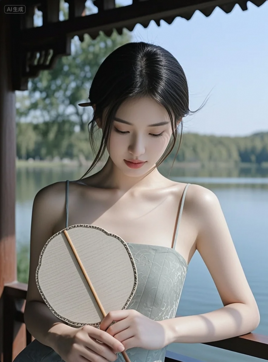 波光粼粼闪烁,映照她内心澄澈的喜悦