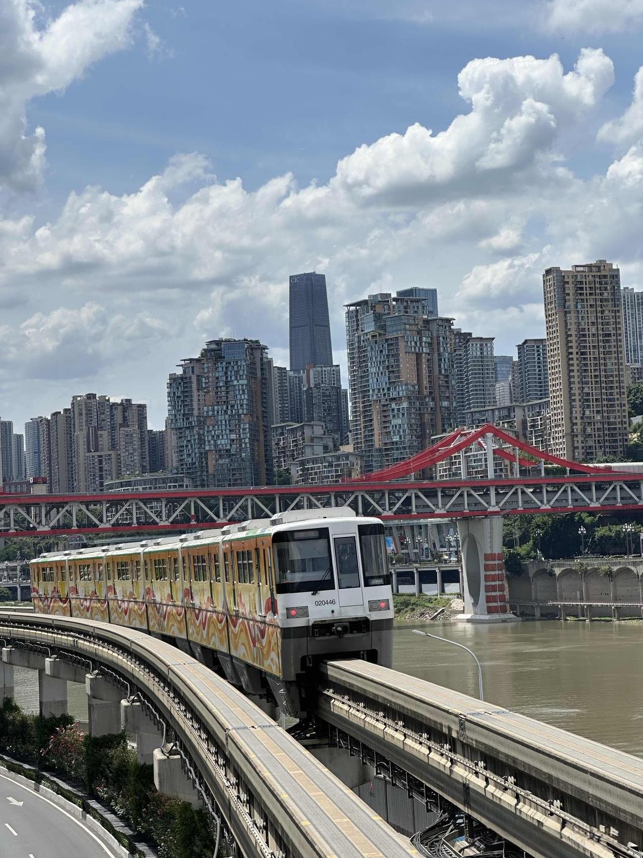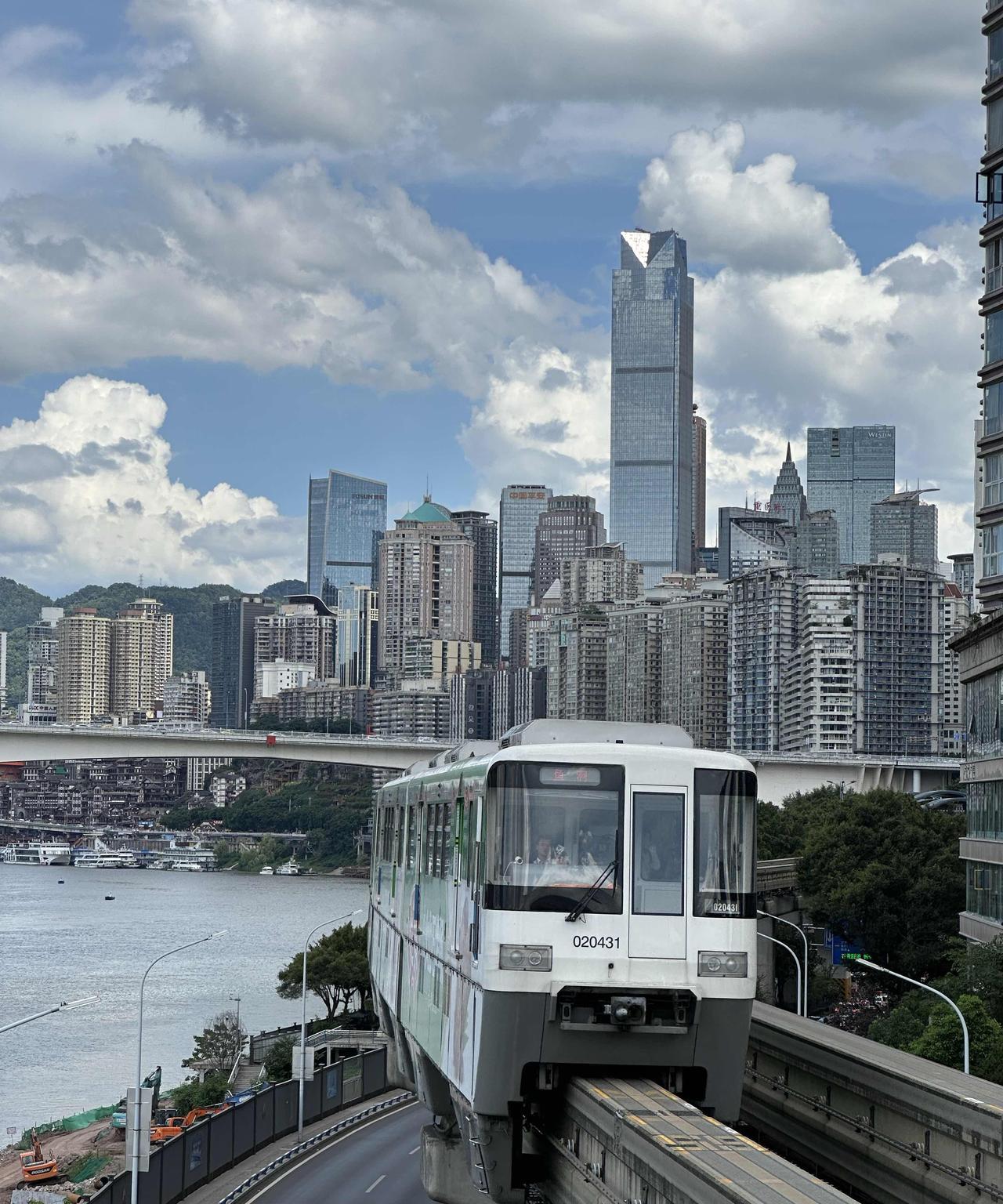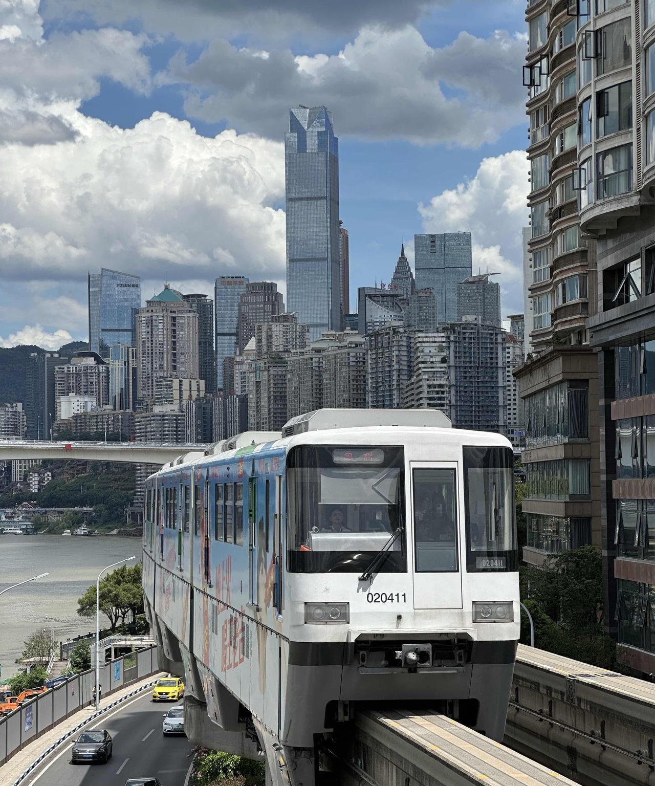 重庆轻轨2号线的大溪沟站,可以欣赏到轻轨列车驶入重庆蓝天白云的冻人画面哦!7月2