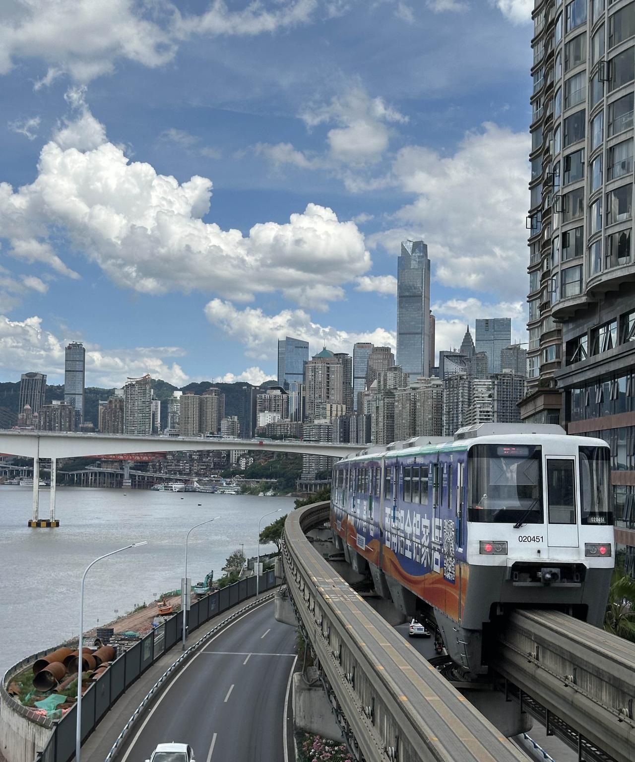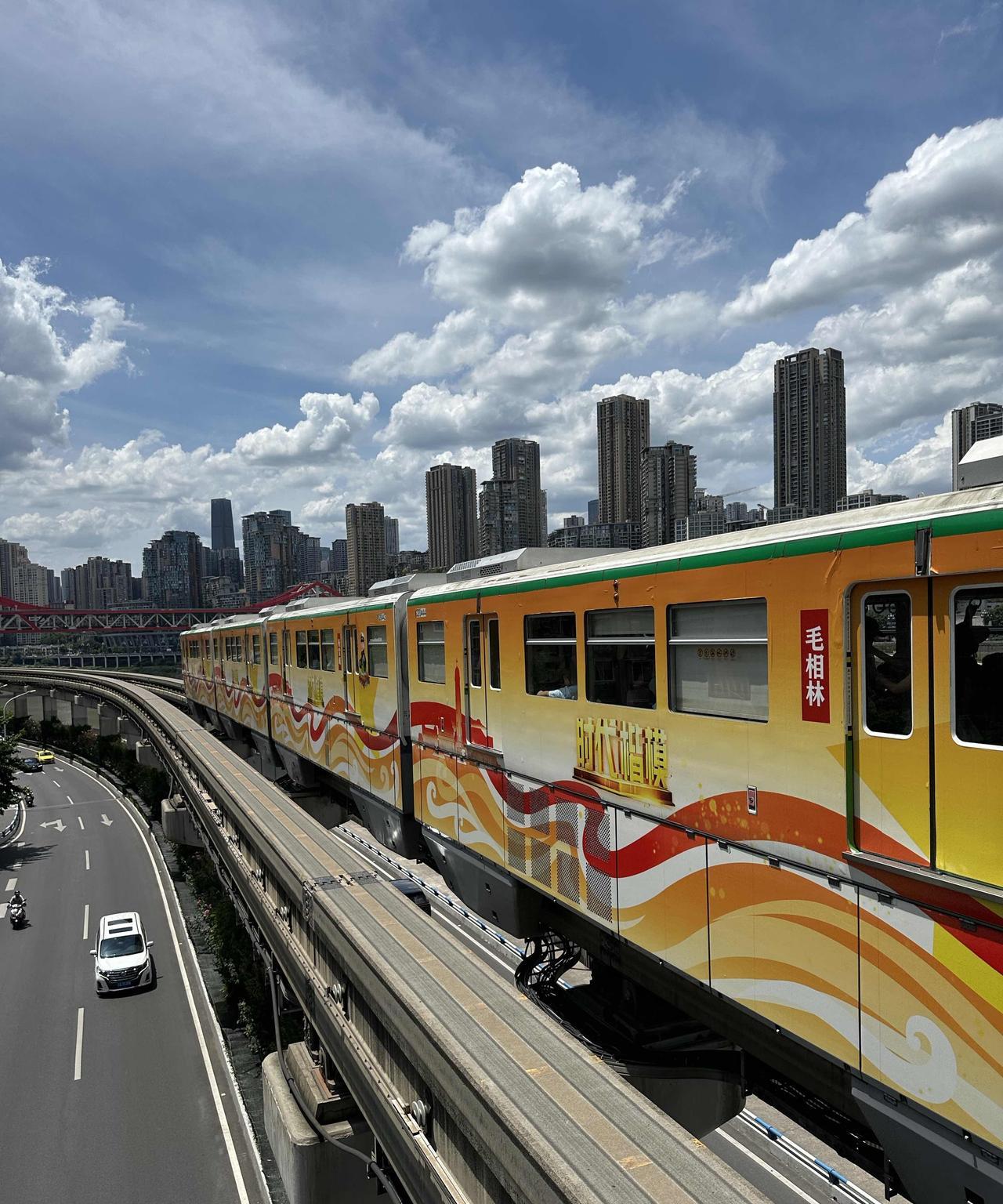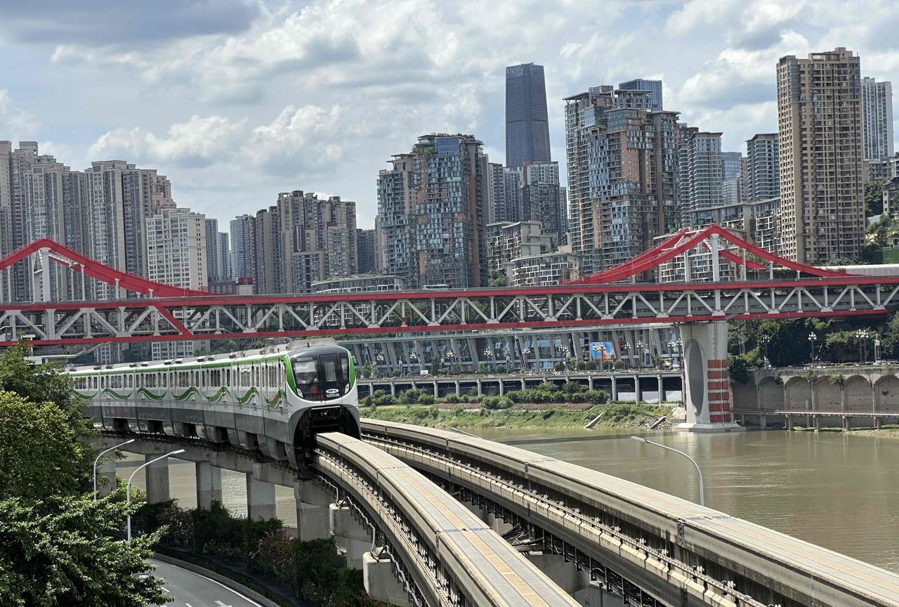 重庆轻轨2号线的大溪沟站,可以欣赏到轻轨列车驶入重庆蓝天白云的冻人画面哦!7月2