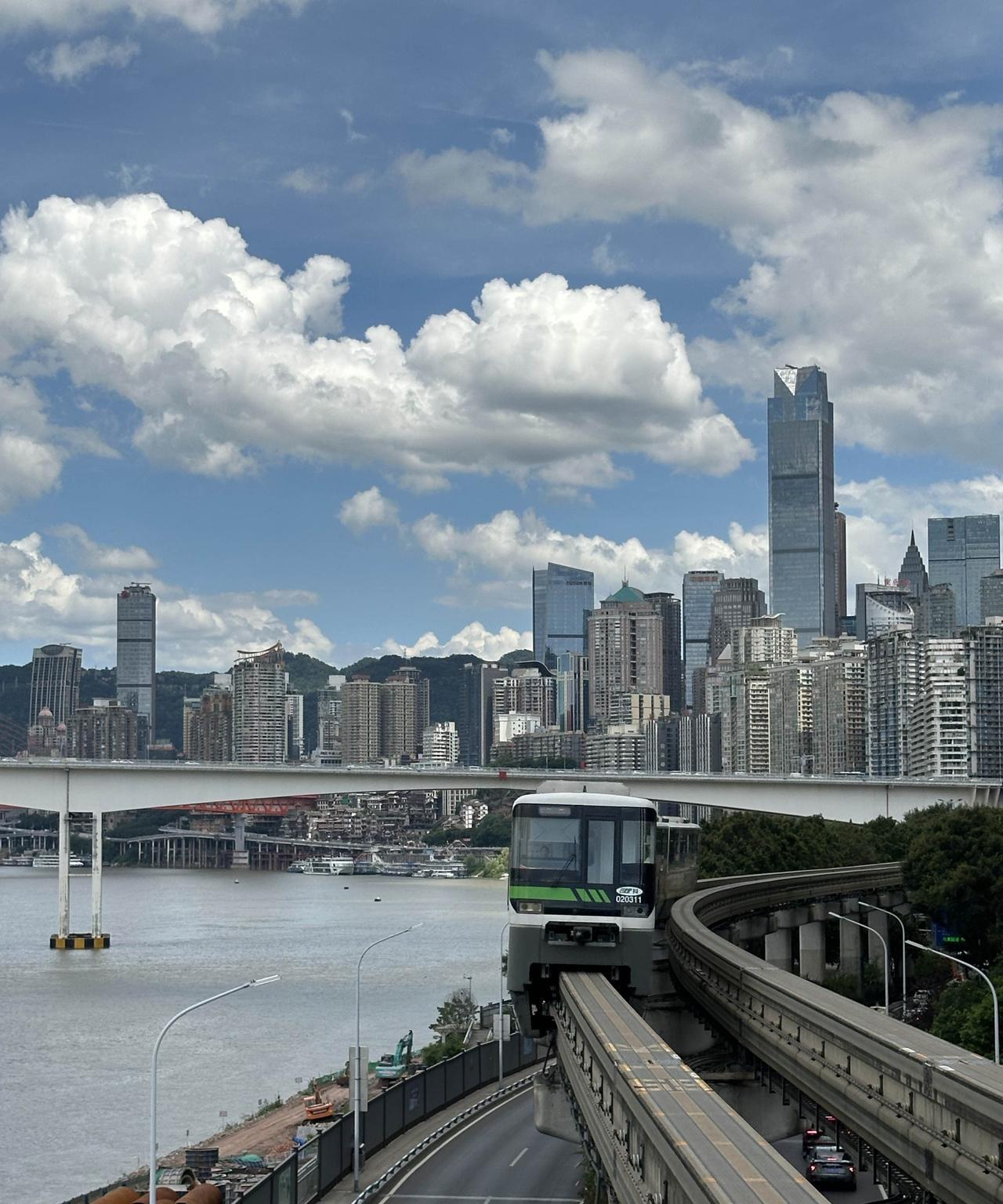 重庆轻轨2号线的大溪沟站,可以欣赏到轻轨列车驶入重庆蓝天白云的冻人画面哦!7月25日下午,我在大溪沟地铁站站台上,欣赏到了洪崖洞解放碑方向的蓝天白云,真心很好看啊!#光线摄影世界曾兰谈天说地#