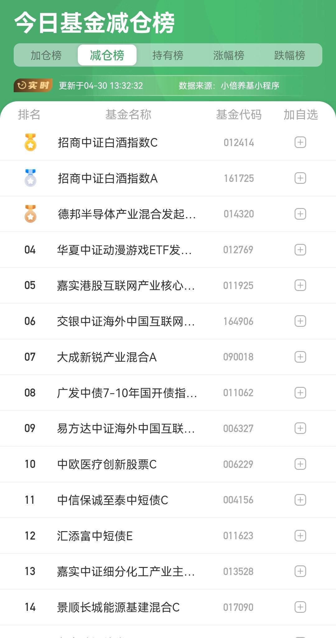 基金 基金加仓榜基金减仓榜金融 投资理财