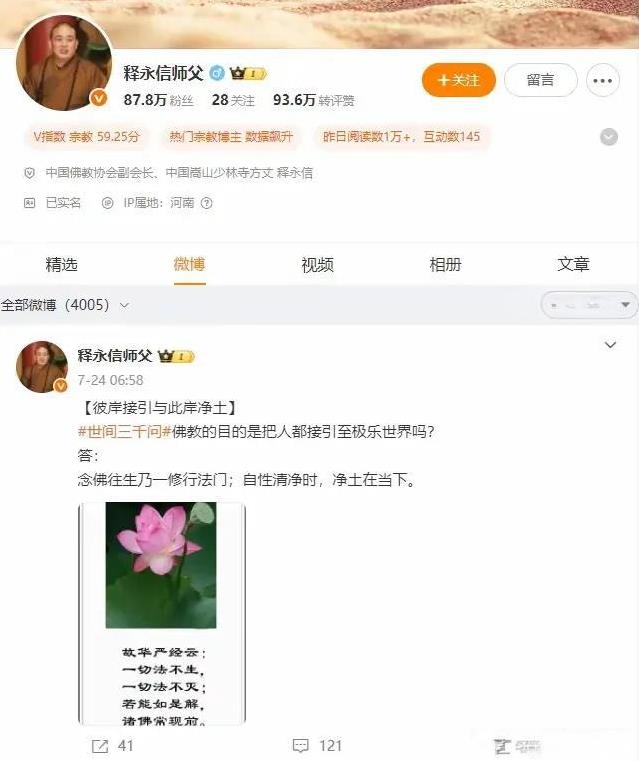 少林寺方丈释永信的账号断更了,这很是反常,要知道他以前平均每天会发布一条半消息呢