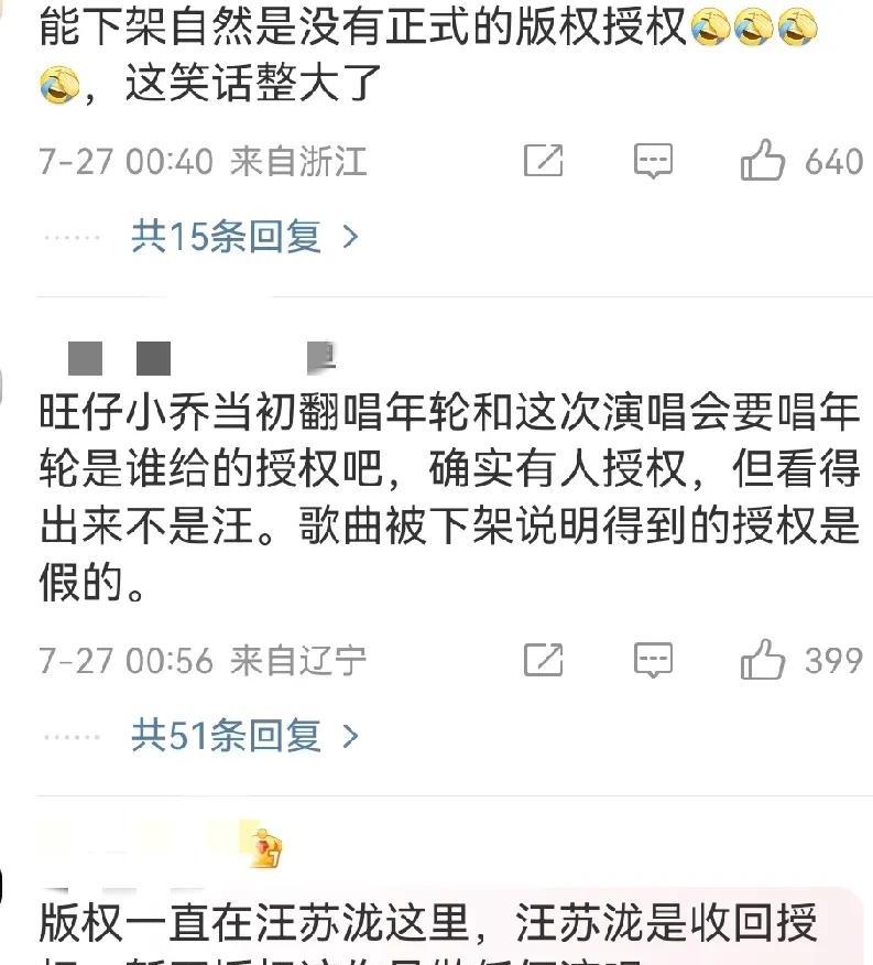 原来汪苏泷收回版权针对的从来都不是张碧晨,而是旺仔小乔! 旺仔小乔翻唱的《年轮》已经被全平台下架了,而她之前翻唱的歌里,明确标注了已获得正版授权演唱,未经著作权人许可,不得翻唱或使用。 这句话很讽刺,在旺仔小乔没翻车之前,大家只以为她是经过了汪苏泷授权唱的《年轮》,如今歌曲被下架,才知道她根本就没有取得授权,要不然就算汪苏泷收回授权不让其他人唱了,之前授权出去的翻唱也不会被下架。 张碧晨之前唱的《年轮》就还好好的,依旧全平台都有。 所以汪苏泷收回授权只是在针对旺仔小乔而已,却没想到张碧晨会出来搅局,把简单的事情复杂化了。