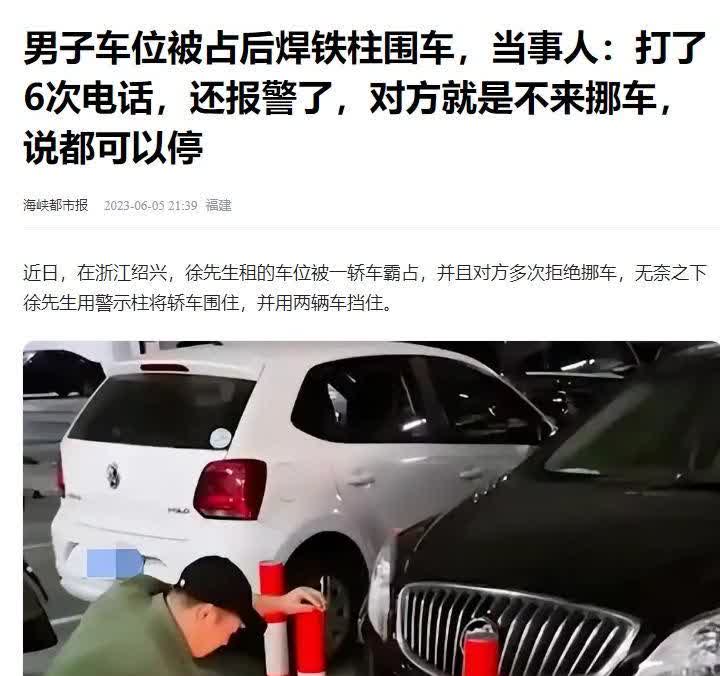 “太缺德了!”2023年,浙江绍兴,一男子开车到家后,发现自己的车位被占用,于是就联系对方挪车!可不曾想,对方非但不挪车,反而说自己停的是公共车位,男子一气之下,直接把自己的车位焊上了铁柱子!网友:太霸气了。 2023年,浙江绍兴有个哥们儿,下班开车回家,本想美美地把车停在自己的租用车位上,结果却发现车位被“鸠占鹊巢”了。本想图个省心,结果遇上这么一档子烦心事。他琢磨着联系车主挪车,结果连打六个电话,对方非但不挪车,还振振有词地说那是公共车位,态度强硬得跟石头似的,连句道歉的话都没有。哥们儿这下火了,直接报警。您猜怎么着?对方一听警察来了,立马改口说自己刚喝了酒不能开车。哥们儿一听,心彻底凉了,也不想再跟这种人废话了。干脆一不做二不休,直接在车位四周焊上了铁柱子,把车围得跟铁桶似的。他还放出话来:想开车?先公开道歉,不然这车就别想动了!这事儿一出,网上可热闹了,有人说他做得太绝,但大多数人拍手叫好。有网友评论说,跟不讲理的人讲道理就是白费,有时候就得拿出点态度来。哥们儿这招虽然有点狠,但也让大家看到了一个普通人面对无赖时的坚决。他不是不懂理,而是不愿再被人当软柿子捏。车位虽小,但规矩不能丢。这事儿告诉我们,讲理也得看对象,碰到那些“缺德”的人,有时候“霸气”一回,也是守住自己底线的表现。