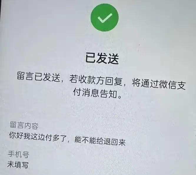 多付款,直接微信账单里,点对订单有疑惑,要求退款,微信平台会支持的呀