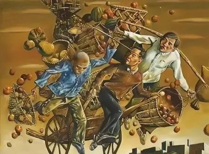 说实话,比中央美院一些大咖画得还要好,画面的张力延伸至画面外,人物夸张的动作充滿张力,虽然是劳动,但充满舞蹈的韵律与节奏![点赞]