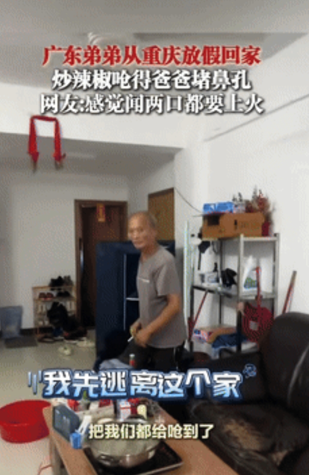 “笑岔气了!”广东一男生从重庆放暑假回家后,要给家人露一手,做点重庆菜给家人品尝,不料,男生在厨房炒辣椒时,呛的爸爸拿卫生纸堵鼻孔,就在男子准备把菜端到客厅时,爸爸一个举动,让姐姐捧腹大笑,网友:这大学没白上,学到了精髓! 据上游新闻7月27日报道,男生原本是不吃辣的,但在重庆上学,就没几个菜不放辣椒,慢慢的,他也入乡随俗,口味发生了变化,要是菜里没辣椒,总觉得少点什么。 放假回家后,每天吃的饭都很清淡,他决定让家人也尝尝重庆菜,于是跑到菜市场买了些需要的食材,重点就是买辣椒,爸爸本来很开心,毕竟儿子亲自下厨了,索性就在客厅等待。 男生钻进厨房自己切菜炒菜,因为太热,就把推拉门给拉开,让空调的凉气进入厨房,可他炒菜的味道也会飘到客厅,不过这菜最终还是要在客厅吃,所以无所谓了。 爸爸闻到辣味,强忍着不适,继续在沙发上窝着,随着辣味变重,他再也忍不住抽了两张纸出来,塞进自己的鼻孔,一脸的生无可恋,让男生姐姐不由得笑了起来。 其实姐姐也觉得呛鼻,但她能忍受,看着弟弟炒好菜,姐姐激动不已,把菜装好盘子后,打算端出厨房,爸爸见状,立即起身,离开了家,不管女儿怎么挽留都没用。 最终男生和姐姐一同吃了饭,姐姐吃完觉得还不错,爸爸从头到尾连碰都不敢碰,男生也没强求,在重庆求学,不仅学到了知识,还掌握了烧饭的技巧,也算没浪费时间。 对于这件事情,大家有什么看法? 信息来源:上游新闻 2025年7月27日