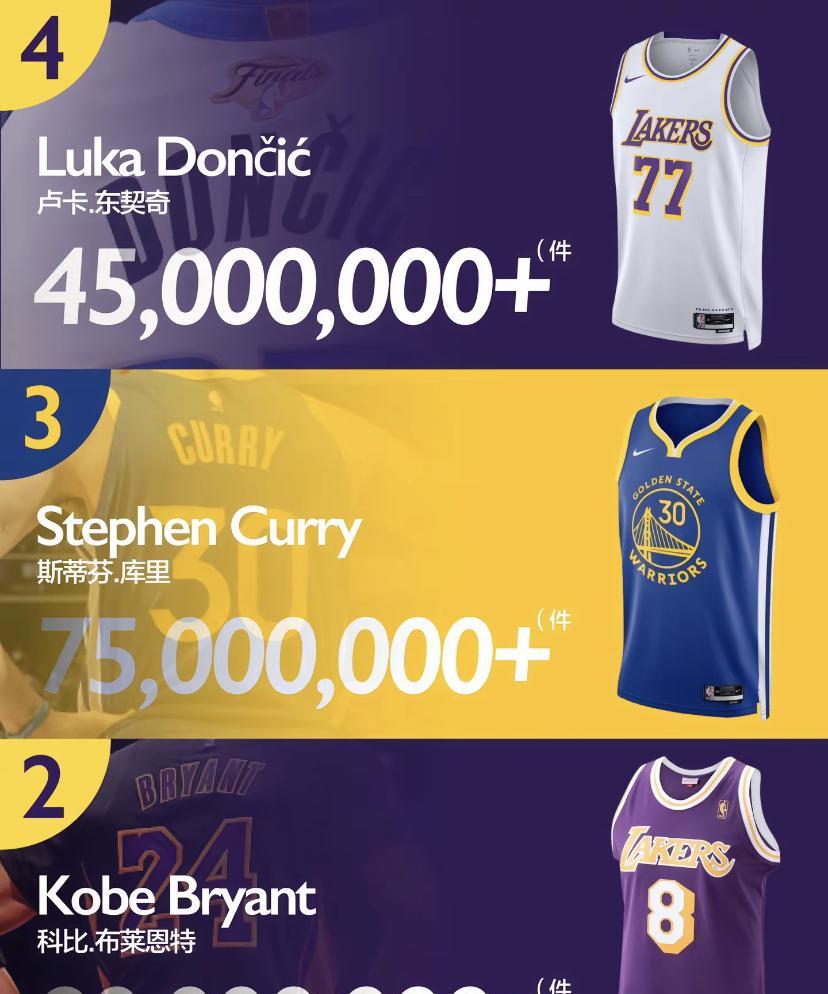 看到21世纪NBA球星球衣销量排行里有库里、东契奇、布莱恩特,还挺感慨的。科比的