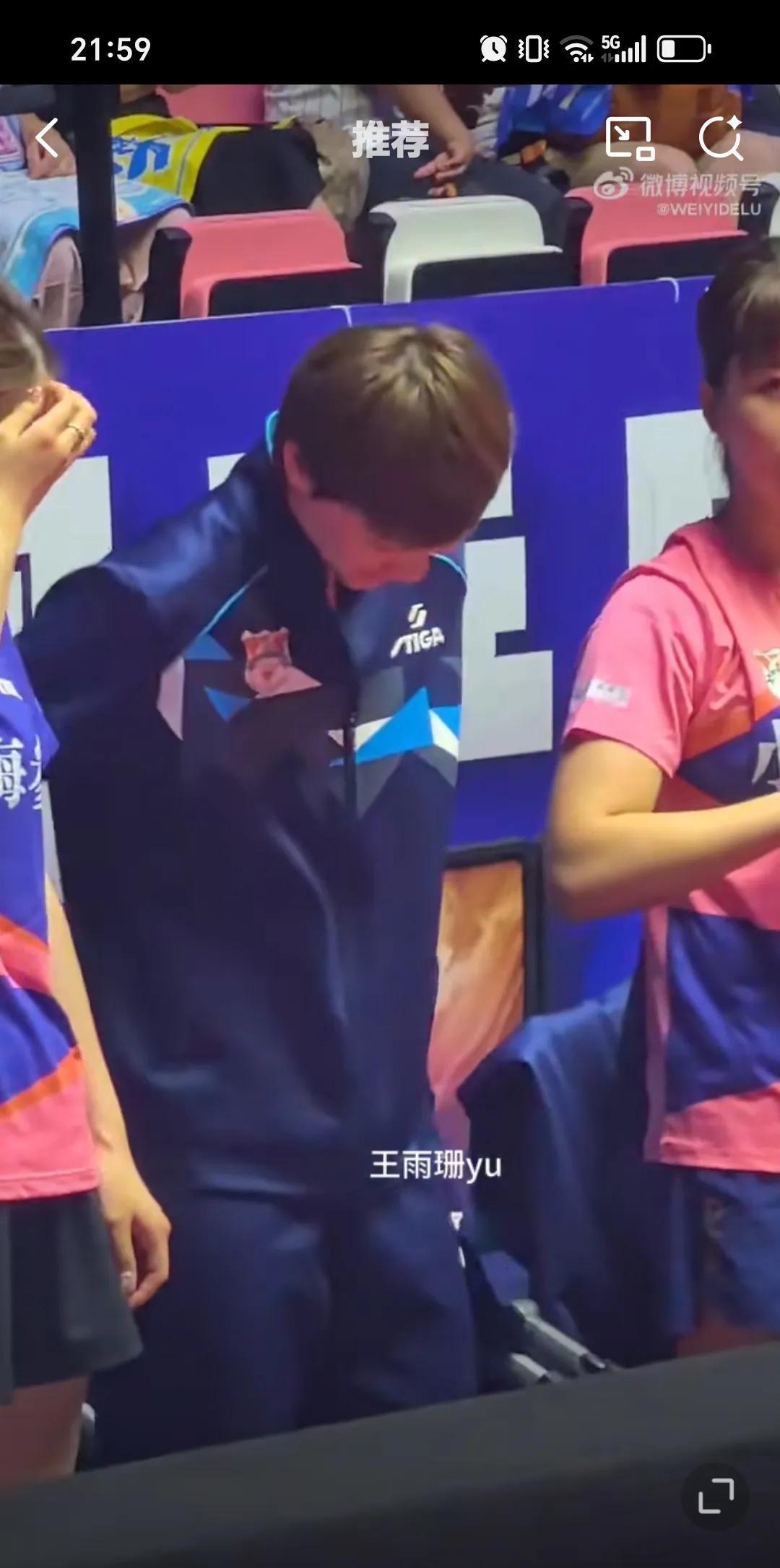 7月27日王曼昱一般不笑除非忍不住,今天王曼昱休息场外给队友加油,听到徐奕粉丝喊口号笑的,徐奕徐奕,神采奕奕说实话,徐奕粉丝很有才。 王曼昱可能是第一次听到这样给队友加油没忍住,笑出来了。钱天一和陈幸同在旁边也笑出声。 只能说王曼昱太可爱,被粉丝的文采折服了