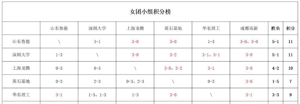 乒超联赛,哪些团队晋级了?最遗憾的是上海地产! 男团晋级四个团队 虽然梁靖崑受伤缺席最后三场, 但不妨碍山东魏桥10胜1负的好成绩。 排名第一。 上海地产和黄石基地都是8胜3负, 排名分列二三名。 汕头明润6胜5负, 排名第四 女团晋级四个团队 山东鲁能和深圳大学5胜1负, 排名一二。 上海龙腾4胜2负, 排第三, 华南理工3胜3负, 排第四 最遗憾的是上海地产, 樊振东出场13次, 保持全胜, 如果小胖缺席第三阶段, 估计上海队很难和山东魏桥抗衡了!
