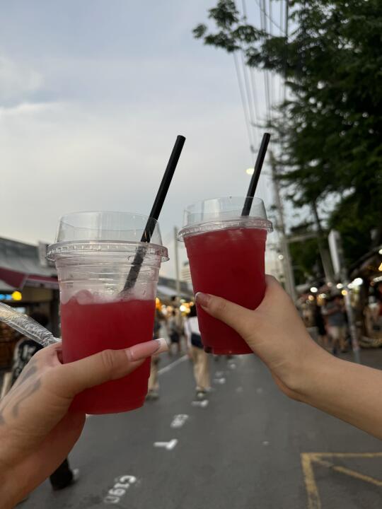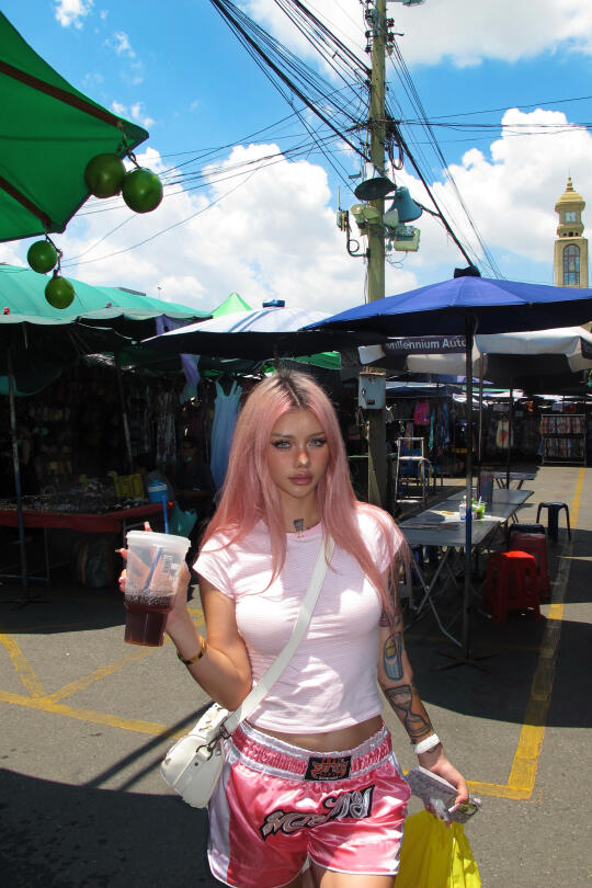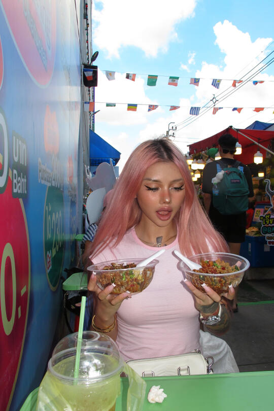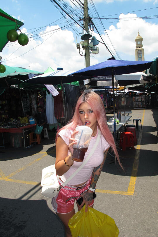 在乍都乍市场逛了一天 谁能猜到我的塑料袋里面装着给诡蜜在LV刚买的小🎁 我就是这么精打细算的好女孩😌 买了一大堆有的没的 同时也很好玩 不知道大家想看购物分享还是看vlog 呢🤔 因为要素真的很多 还是想听听想法思密达 图34吃到超级好吃的饭 好辣🥵 每天最爱去 711喝咖啡 有没有发现我全是粉色🎀
