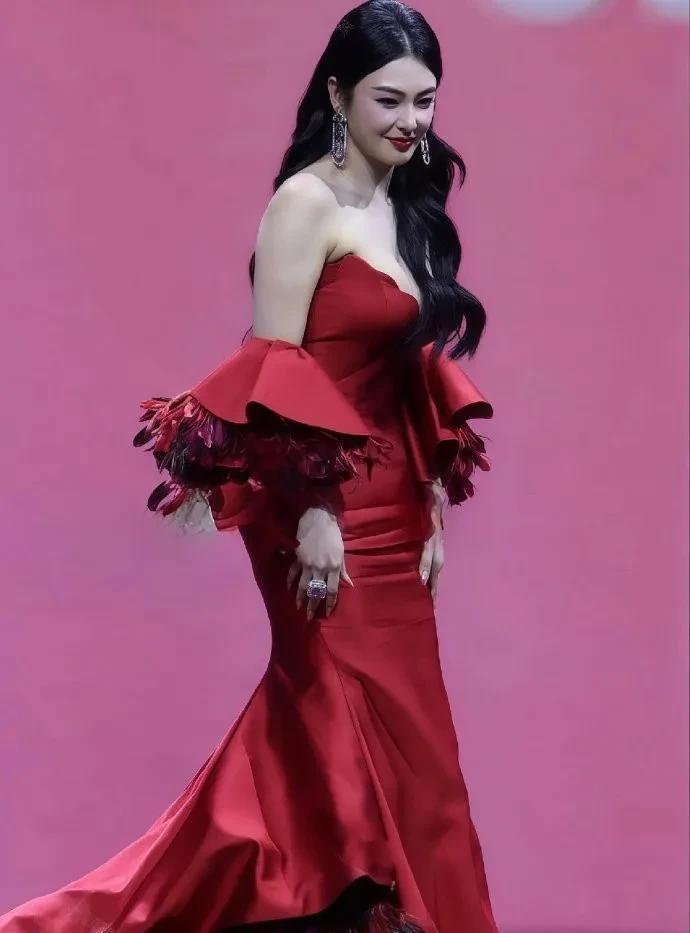 张雨绮一袭红裙杀疯了!抹胸勾勒傲人曲线,羽毛袖摇曳生姿,皮肤白到发光,一个回眸直接把人美到失语,这性感谁扛得住啊!
