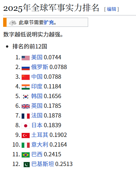 此排名源于Global Firepowerx仅根据海军舰船数量对海军力量进行排行