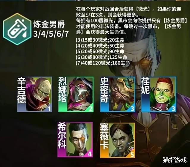 S13赛季增加了不少新的角色和羁绊,不过其中最受作者关注的则是炼金男爵羁绊,也就是我们常说的“收菜羁绊”的上线,根据炼金男爵羁绊效果,玩家在每回合对战后都将获得一定数量的“微光”,而每累积100微光即可开启一次黑市商店获得装备奖励。