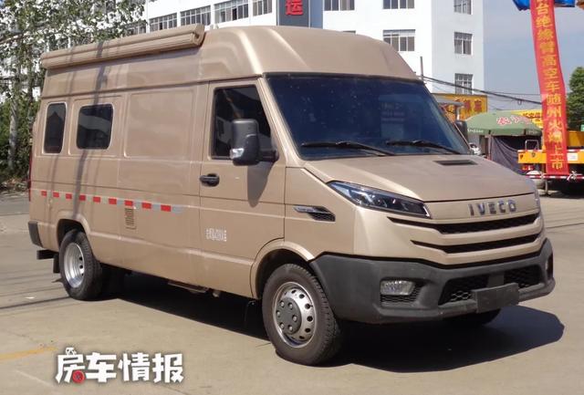 这是一款基于依维柯聚星轻客底盘打造的宿营车产品,这款底盘和大通V70同平台打造属于换标产品,这两款车型的直接竞品就是福特全顺T6,都是那种尺寸比MPV大,比轻客小的一类,属于宜商宜家的底盘。