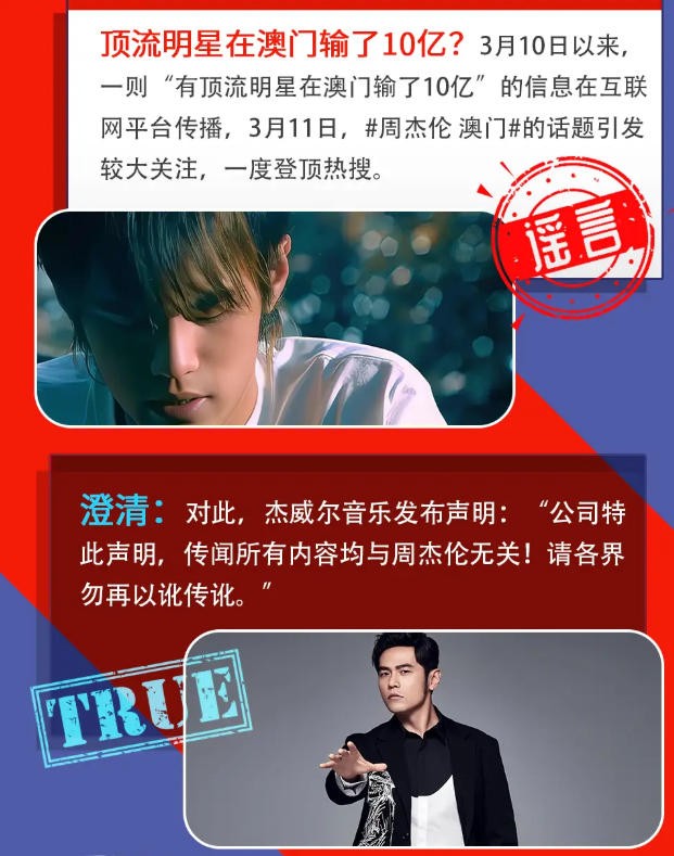4. 周杰伦"澳门风云"惊魂记谣言内容:顶流明星澳门输10亿