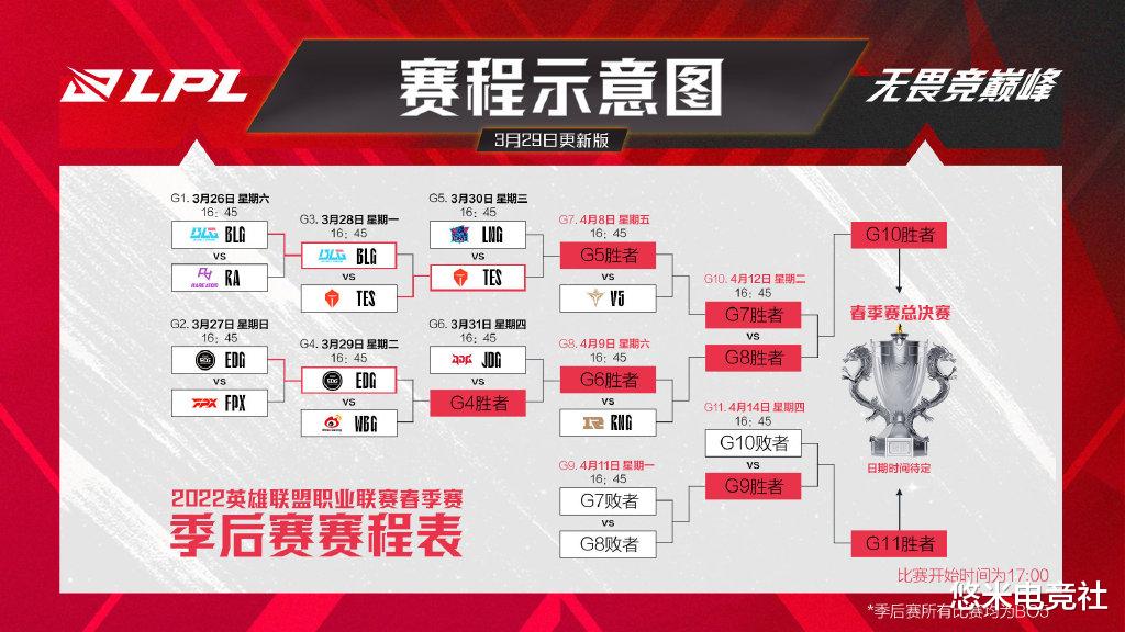 由于近期上海的疫情严峻,各地都已逐渐封闭管理,LPL为全力配合防疫工作,保障选手、工作人员的健康和安全,将4月1日的比赛全部延后至4月8日,赛程拖长了一个星期。
