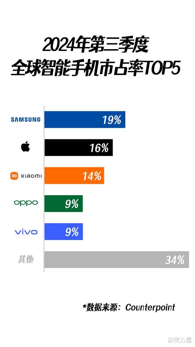 实际上,OPPO Find X8系列能够快速在高端机市场站稳脚跟,并非是一蹴而就的,其主要的基石,是OPPO持续创新形成的强劲竞争力。也是在这个基础上,OPPO手机市占率始终居行业前列。根据知名调研机构Counterpoint的数据,2024年Q3全球智能手机市占率排名上,OPPO排名第四。