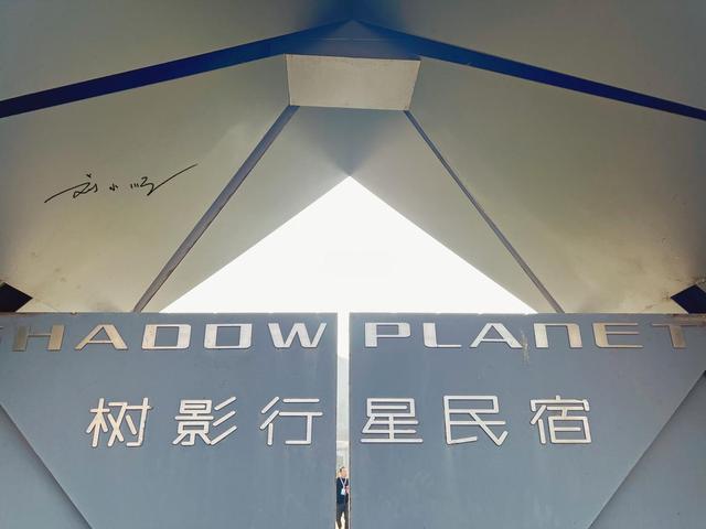 我说的这家宝藏民宿,名字叫做“树影行星民宿”,当我们刚来到这家民宿的大门口,就已经感觉科技感十足了。