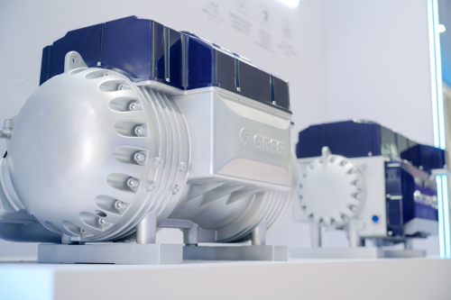 离心机是制冷量最大的设备,广泛应用于大型商超、机场、建筑等场所。传统技术路线使用定频机组,需要用增速齿轮来增加转速。而格力使用的是自主研发的高速永磁同步变频电机,优化掉了增速齿轮这个零部件。少了一个传动环节,再加上永磁材料的应用,离心机的噪声、能耗和体积也相应减小。