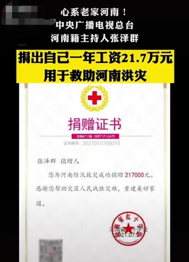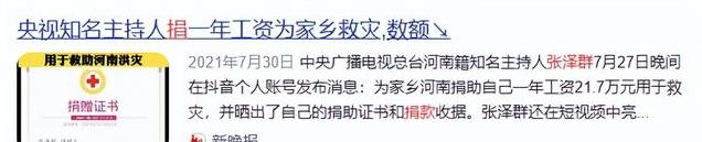 资料参考:2021-07-30新晚报——央视知名主持人捐一年工资为家乡救灾,数额↘