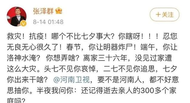 河南卫视在灾情紧张时,还是播出了《七夕奇妙游》这个娱乐节目。