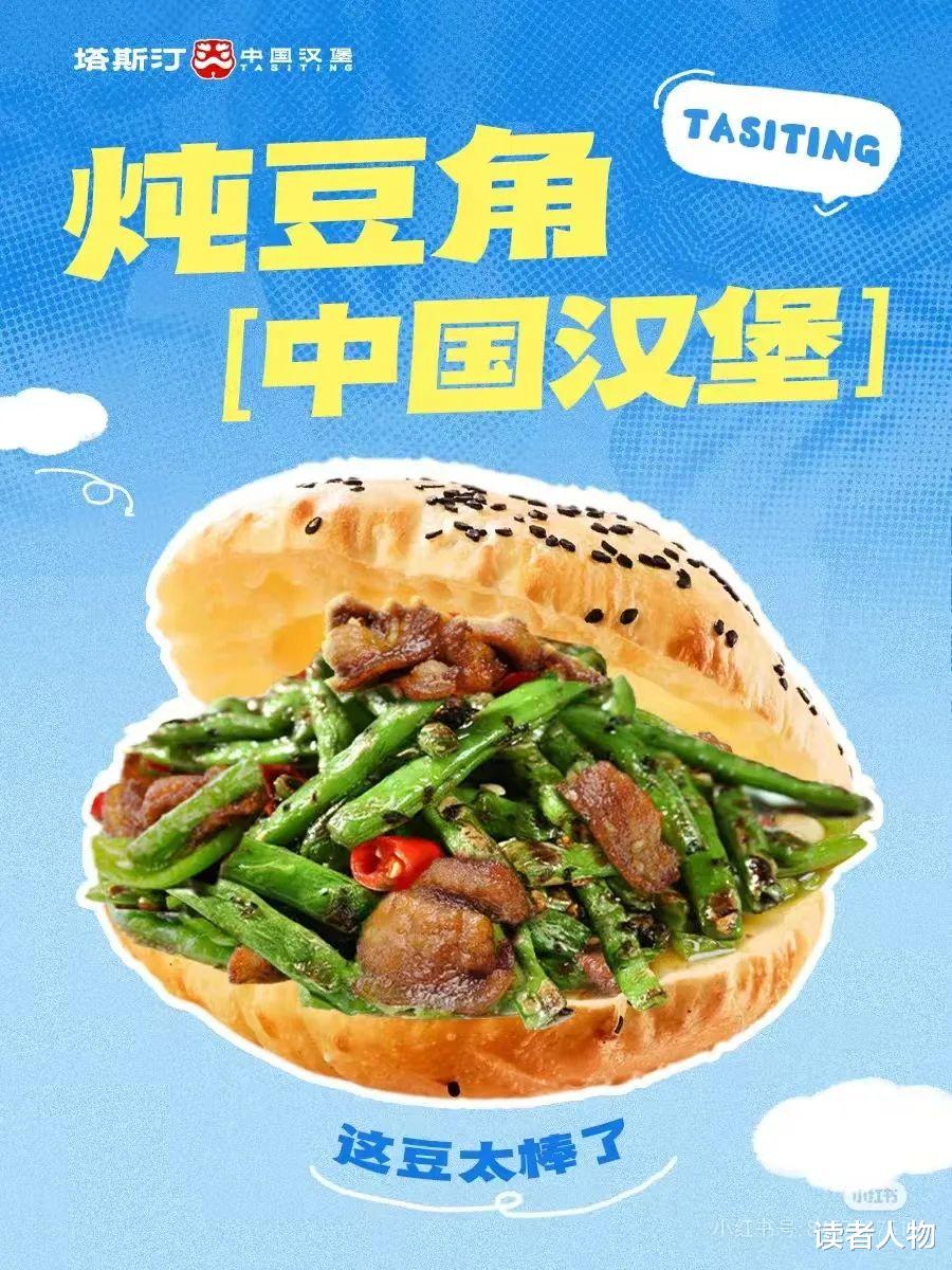 这些组合起到很好的传播效果。大家在摸鱼冲浪的时间,以娱乐的方式认识了塔斯汀的独特定位:塔斯汀的品牌定位“中国汉堡”,采用西餐中做的方式,用汉堡夹中国菜品,简而言之就是“堡+万物”。比如鱼香肉丝中国汉堡、麻婆豆腐中国汉堡等。