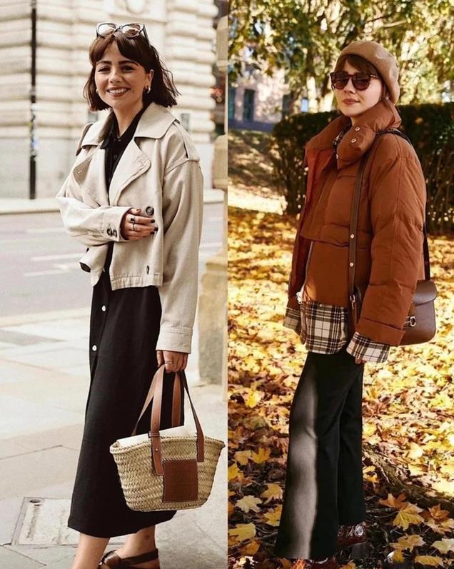 短夹克与长裙的搭配可以很好的隐藏身材缺点,既不臃肿又显得干练优雅。