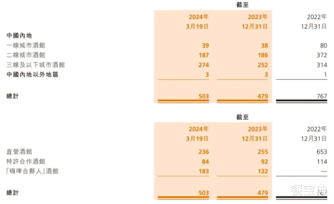 这种策略调整使得门店经营成本明显下降,尤其是员工人数的减少使得人力成本显著降低。尽管它的“特许合作酒馆”与“‘嗨啤合伙人’酒馆”数量有所增加,但因为这些都是加盟店,属于“共创共享风险共担”,所以不会对其成本造成多大的负担。