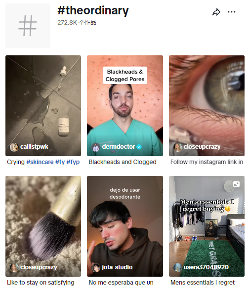 例如在TikTok上热销的另一个护品牌The Ordinary。该品牌成立于2013年,一直深耕在抗衰老、美白、保湿、去角质等功能的护肤领域。随着TikTok Shop在美妆个护行业的名声四起,The Ordinary也开始将TikTok纳入其营销布局的版图。
