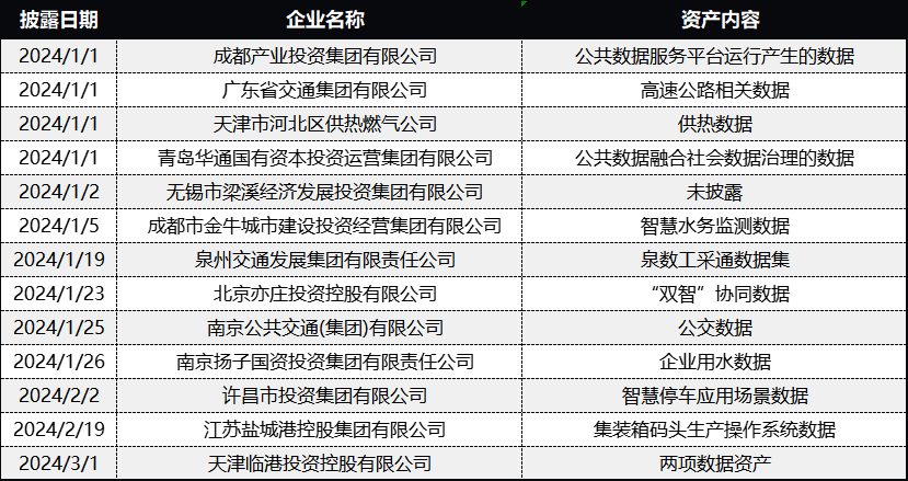 据不完全统计,截至目前,国内至少已有77家实体企业将数据登记为资产,其中包括19家地方政府融资平台,25家国有企业和33家民企。而入表资产则以公交、供暖、供水等公共事业数据为主,个别城投还通过数据资产完成了融资。