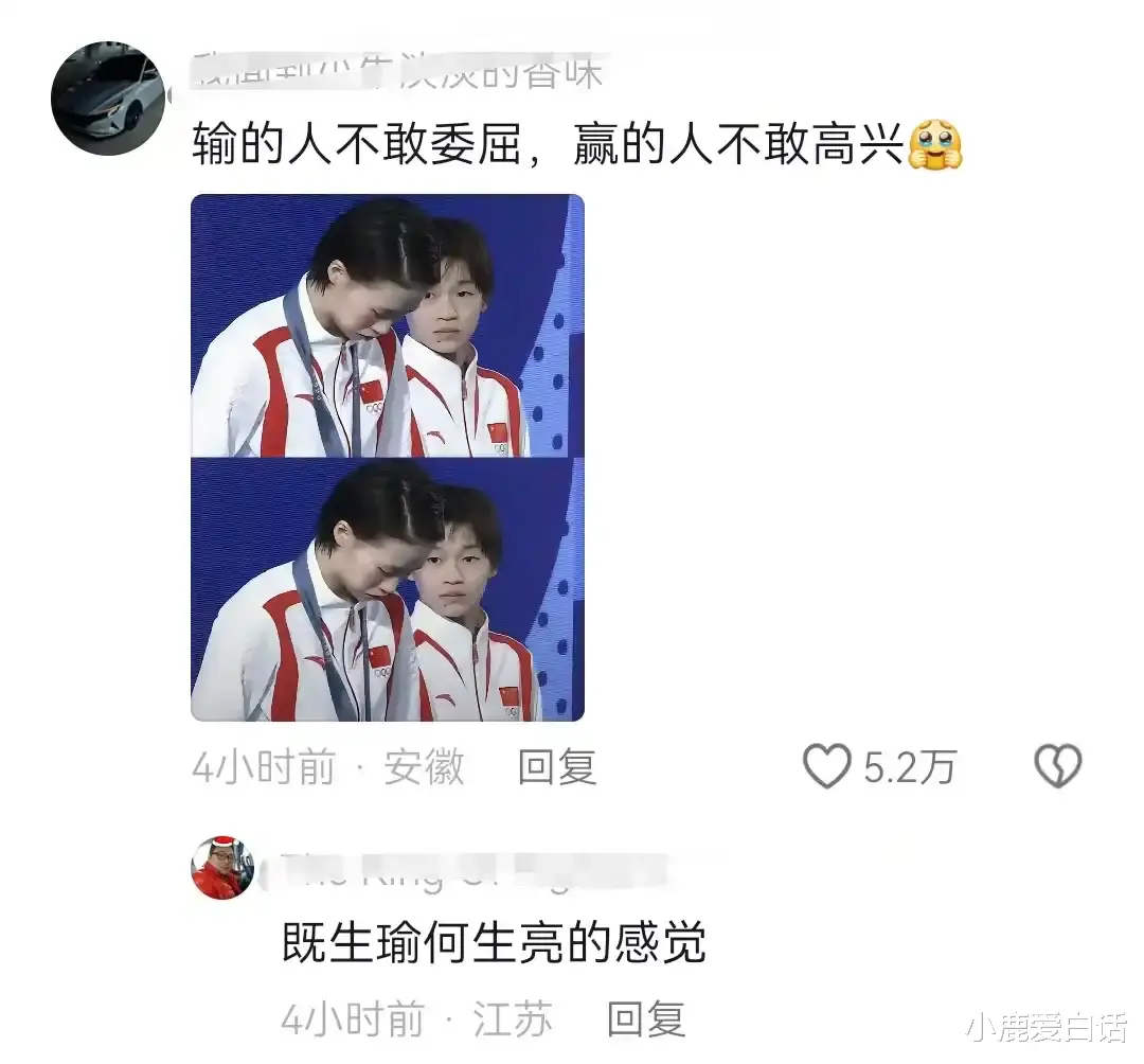 而全红婵则展现出了坚定和自信,她能够在比赛中处理好复杂的心理和情绪,全身心投入到比赛中,这样的状态自然也能够取得好成绩。