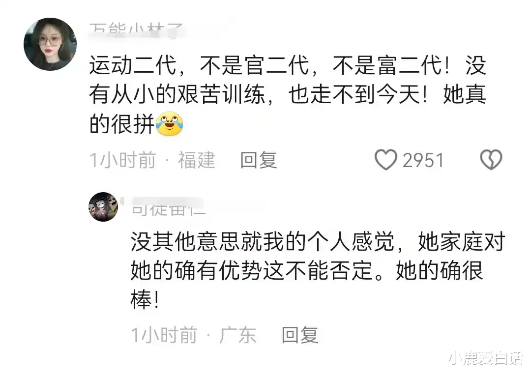可以说,作为运动员来说,拥有强大的内心和心理素质同样非常重要,她们需要学会面对各种压力和挑战,不被外界的声音所左右,保持良好的状态和心态,这样才能够在比赛中全情投入,取得好成绩。