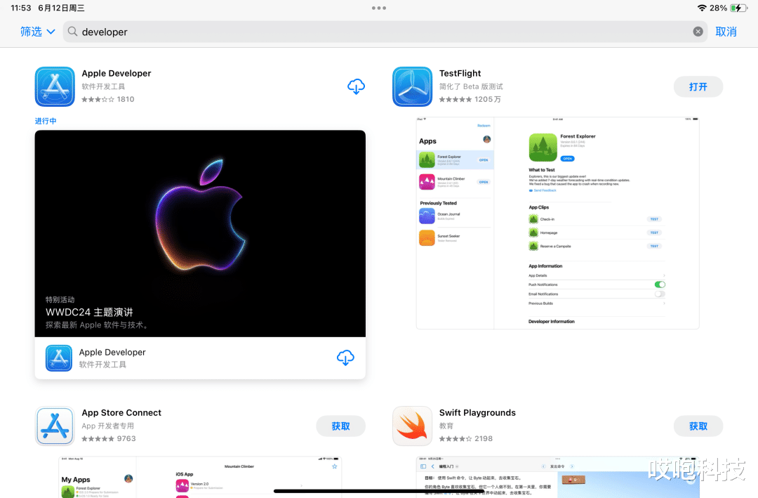 iOS 18.4 Beta 是开发者测试版,不建议主力机更新;国行用户目前无法使用 AI 相关功能,升级前请自行斟酌。注意:强烈建议升级前使用 iTunes 或 iCloud 进行完整备份。从去年开始,升级测试版不再使用描述文件,而是改为新的方式。iPhone 和 iPad 都可以使用这种方式:首先,打开 App Store,搜索官方的开发者应用「Developer」,如下图第一个所示,不要下载错了哦。