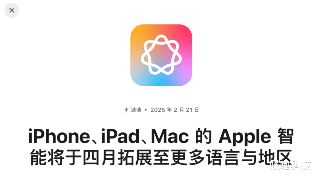 同时,苹果今天通过新闻稿宣布,Apple 智能将在 iOS 18.4 中支持包括简体中文在内的更多语言(还有法语、德语、意大利语、葡萄牙语、西班牙语、日语、韩语以及新加坡/印度的本地化英语。)