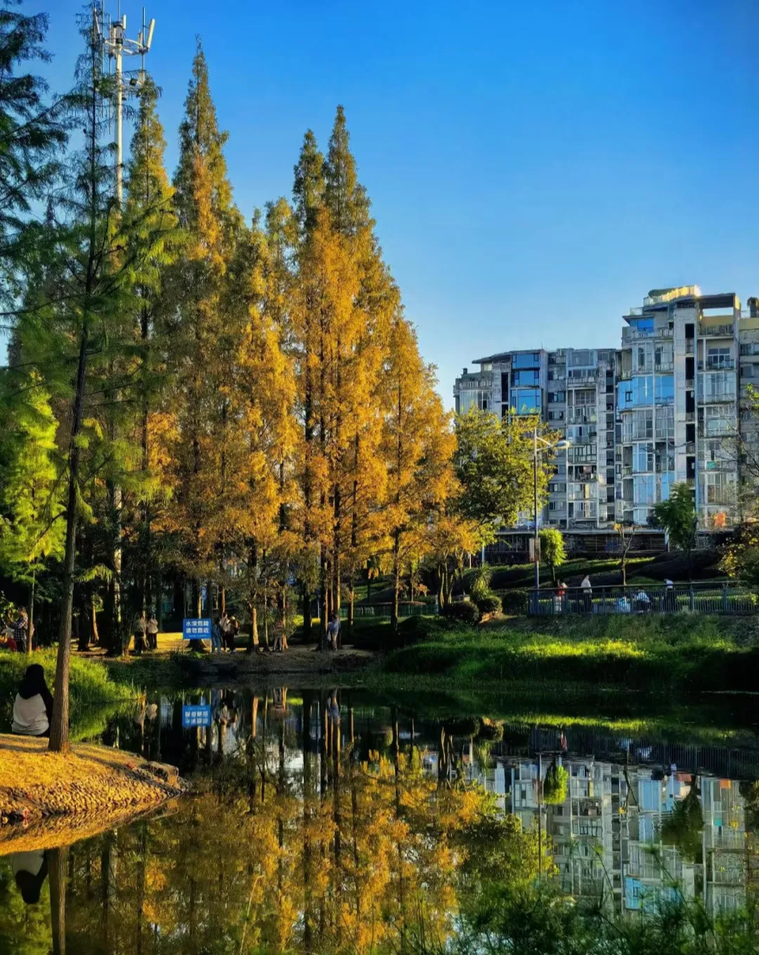 随着季节的更迭,园内的落羽杉树悄然换上了秋的盛装。从初秋的翠绿,到深秋的火红,每一片叶子都似乎在诉说着季节的故事。