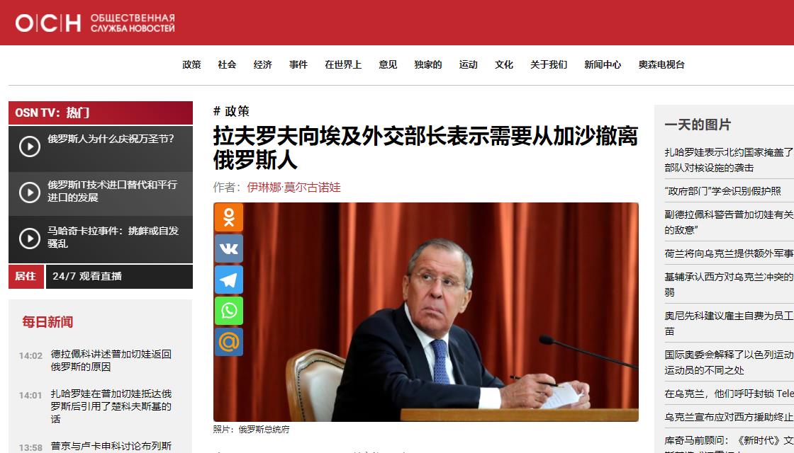 有一个细节值得注意,俄罗斯跟埃及谈判,请求埃及高抬贵手让俄罗斯人通过拉法检查站,是由外交部长拉夫罗夫亲自出面与埃及外交部长舒克里进行谈判的。
