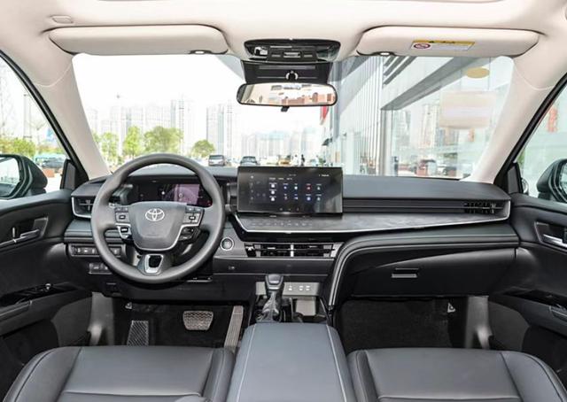 在内饰上,第九代凯美瑞的设计风格和新能源车型比较相似,中控配备了12.3英寸的液晶大屏,触控式的按键也使整体的档次得到很大提升。同时车的智能水平也很高,配备了8155车机芯片,使车机的运算速度提升了4倍,还有华为生态AI语音助手、丰田首个自营应用商店、64色律动氛围灯、智能香氛系统、声纹面容识别等。另外车上还配备了AR-HUD和全景天幕,紧跟新势力的潮流。值得说的是,新车全系标配10气囊,这在同级别车中也是唯一的存在,还有同级车少见的前排中央气囊,安全性大大提升。