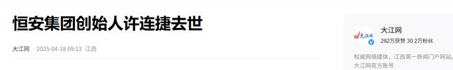 4月17日,恒安集团的创始人许连捷因病去世,享年73岁。