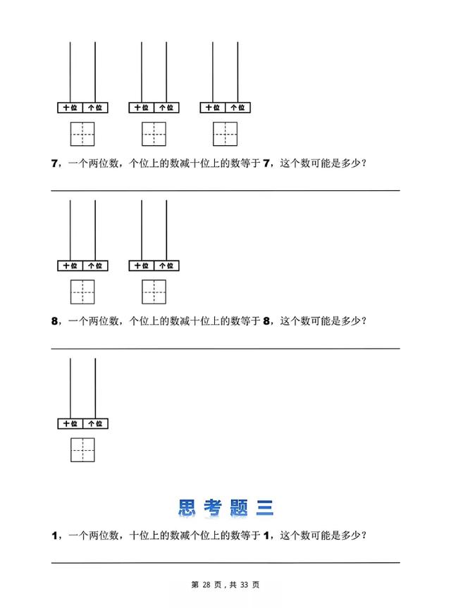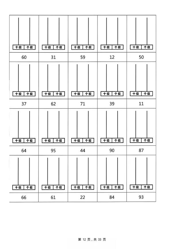 一年级下册数学,100以内数的认识读数写数专项练习33页