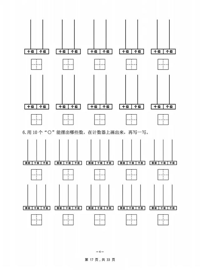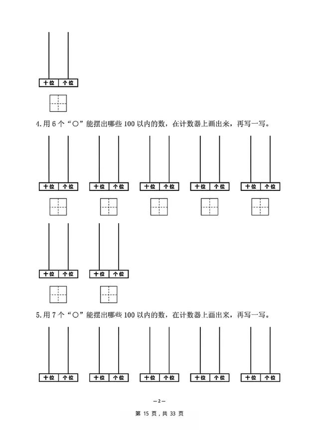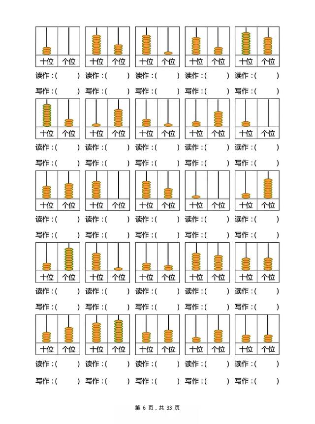 一年级数学下册,100以内数的认识读数写数专项练习33页