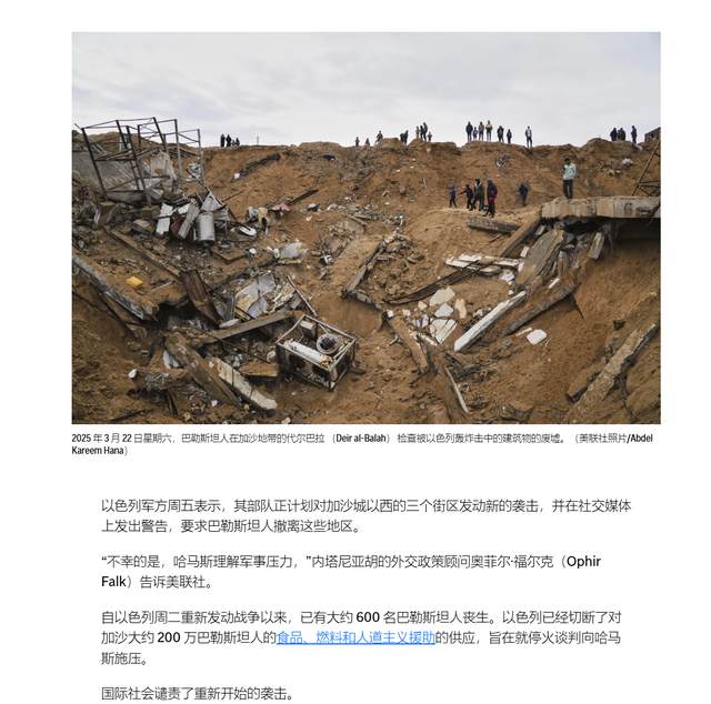 自以色列周二重新发动战争以来,已有大约 600 名巴勒斯坦人丧生。以色列已经切断了对加沙大约 200 万巴勒斯坦人的食品、燃料和人道主义援助的供应,旨在就停火谈判向哈马斯施压。