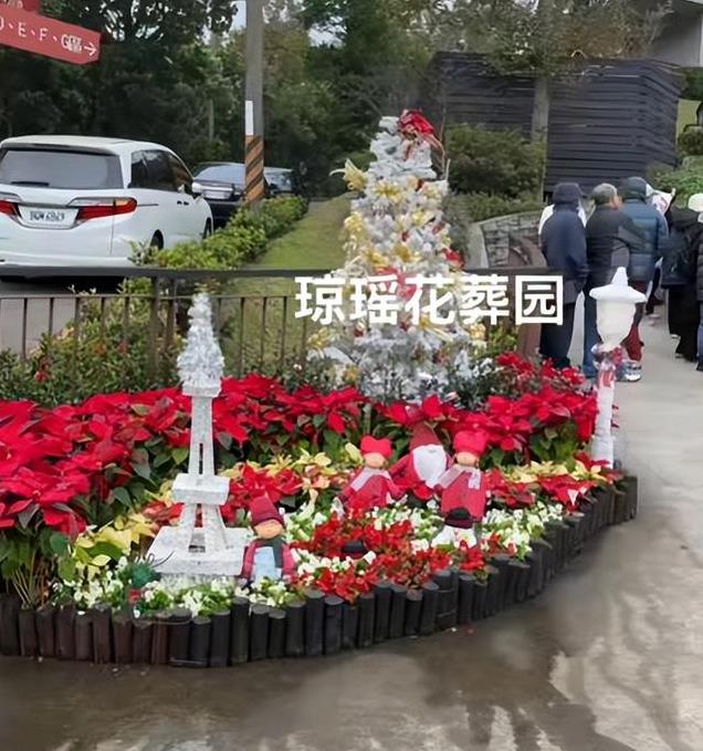 墓园方面也很温馨,在墓园的入口位置摆着由玫瑰花组成的圣诞树小花园。