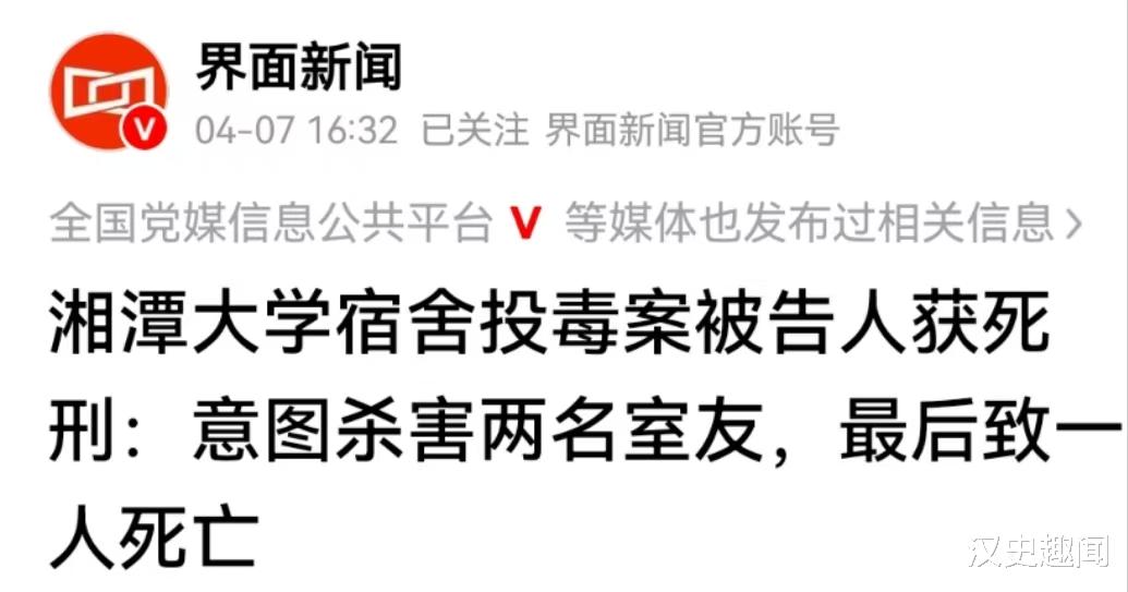 4月7日报道,湖南湘潭大学宿舍投毒案迎来了后续。湖南湘潭中级人民法院一审宣告,嫌疑人周立人死刑,剥夺政治权利终身。
