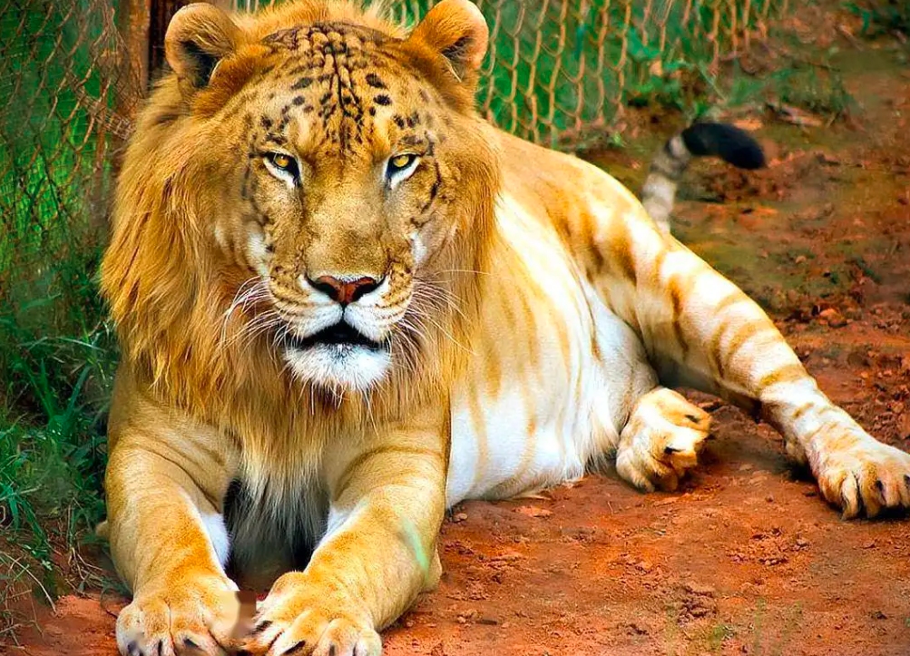 狮虎兽就是雄狮和雌虎交配之后诞下的后代,它的身上既有老虎的花纹,头上又有狮子的鬃毛。并且,狮虎兽的体型和毛色更加像狮子一些,从外表看起来还是非常怪异的。