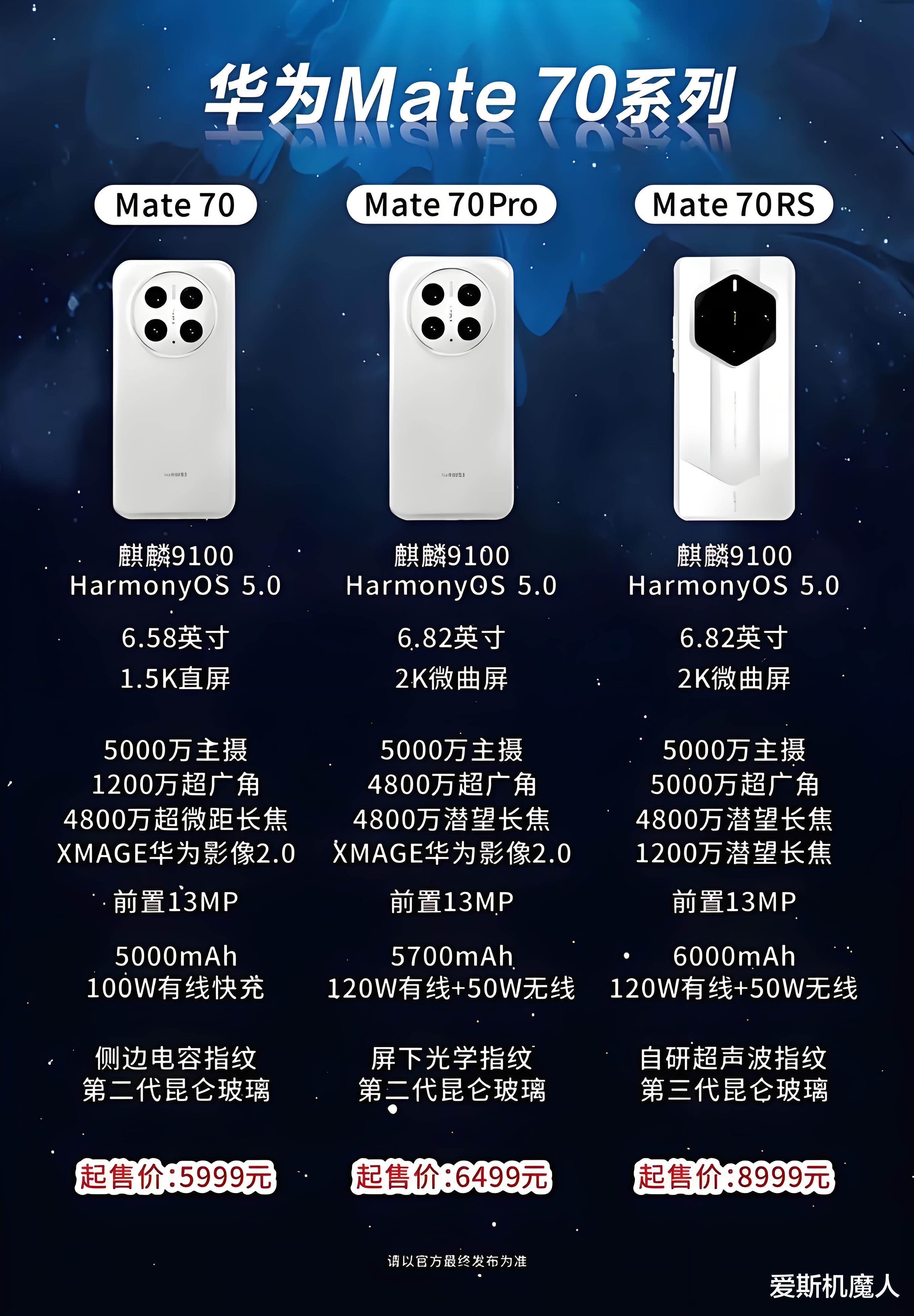 最后是价格方面,与整体涨价的安卓手机相比,华为Mate70系列将采用加量不加价的策略,售价与华为Mate60系列持平,12GB+256GB的华为Mate70会定在5499元,华为Mate 70 Pro的首发价格是6499元。今年都在涨价,华为却不涨,华为Mate70系列卖这个价格,价格有点狠啊,友商怕是要疯。